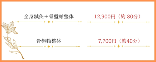 妊娠しやすい身体づくりをした上で、血流が流れにくくなっている場所や疲れが出やすい不調の部分をオイルを使いより重点的にケアをします。